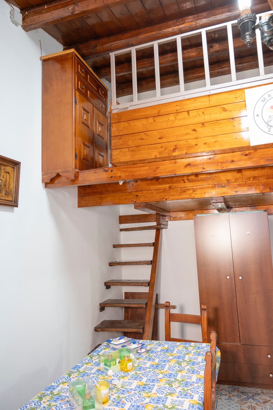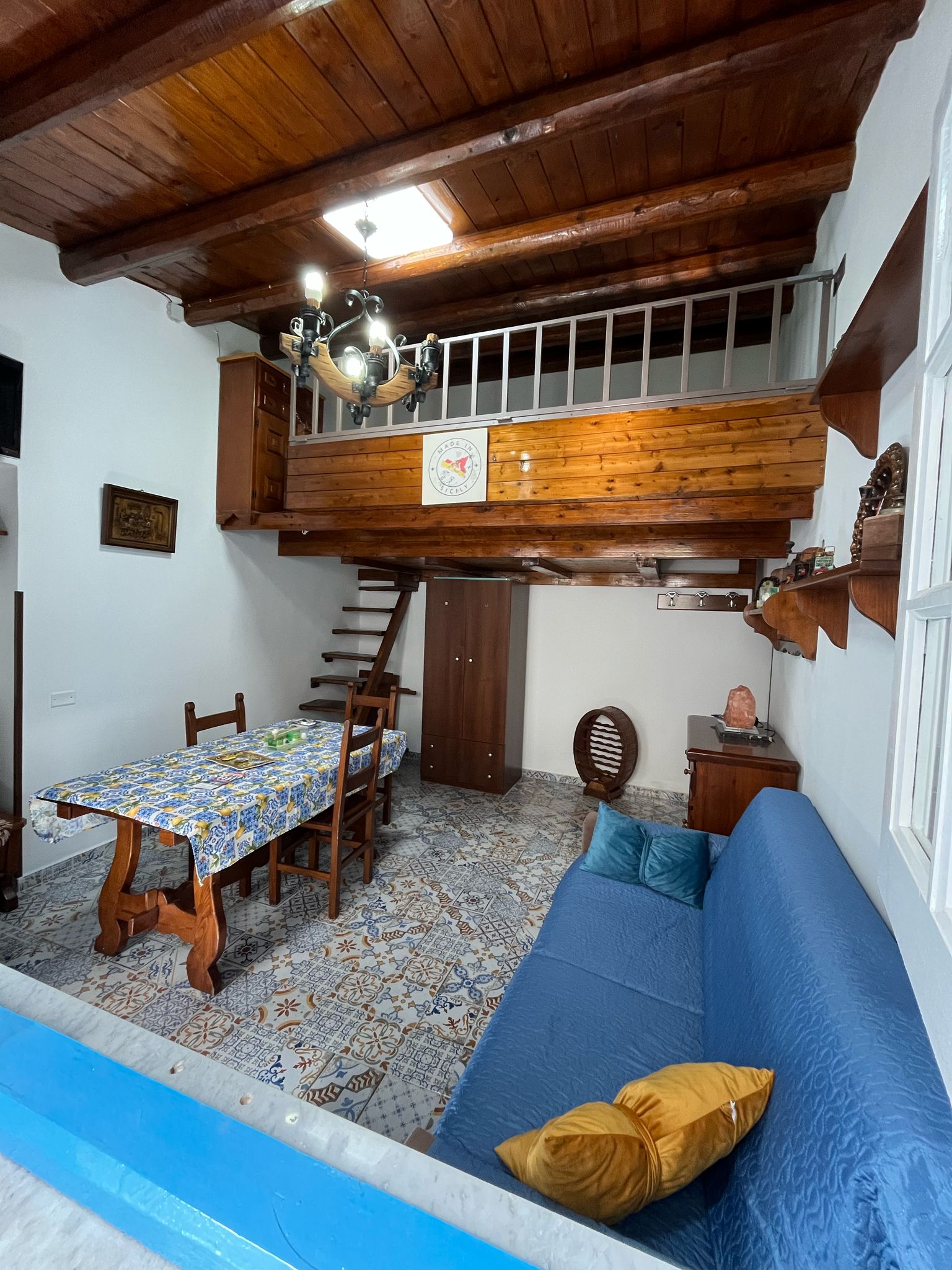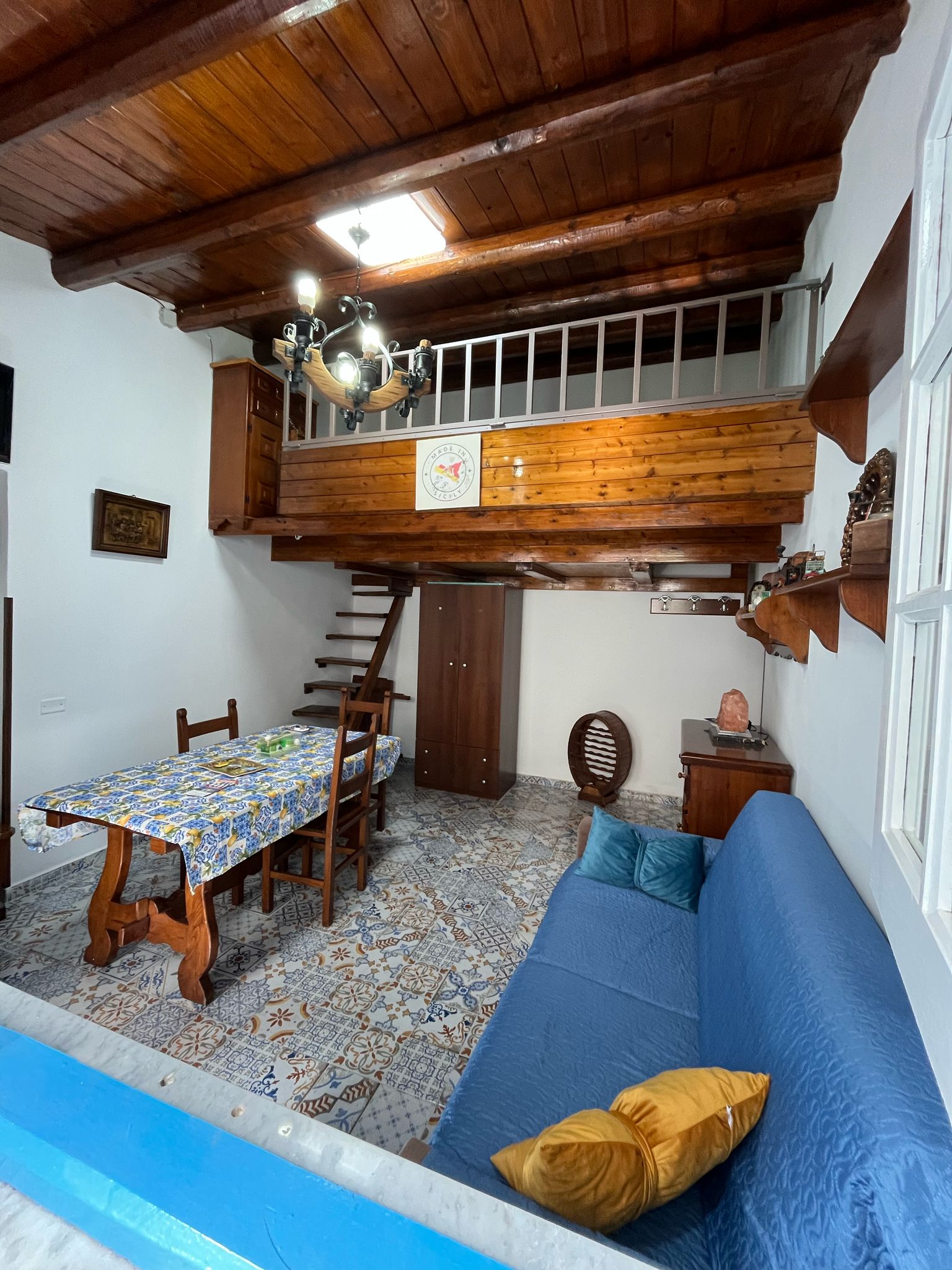 All’appartamento Ficurinia si accede dal piano terra, entrando nella zona living e’ presente il divano letto due posti, ottimo anche per ospiti a mobilita’ ridotta, mentre il secondo letto matrimoniale si trova nel soppalco.