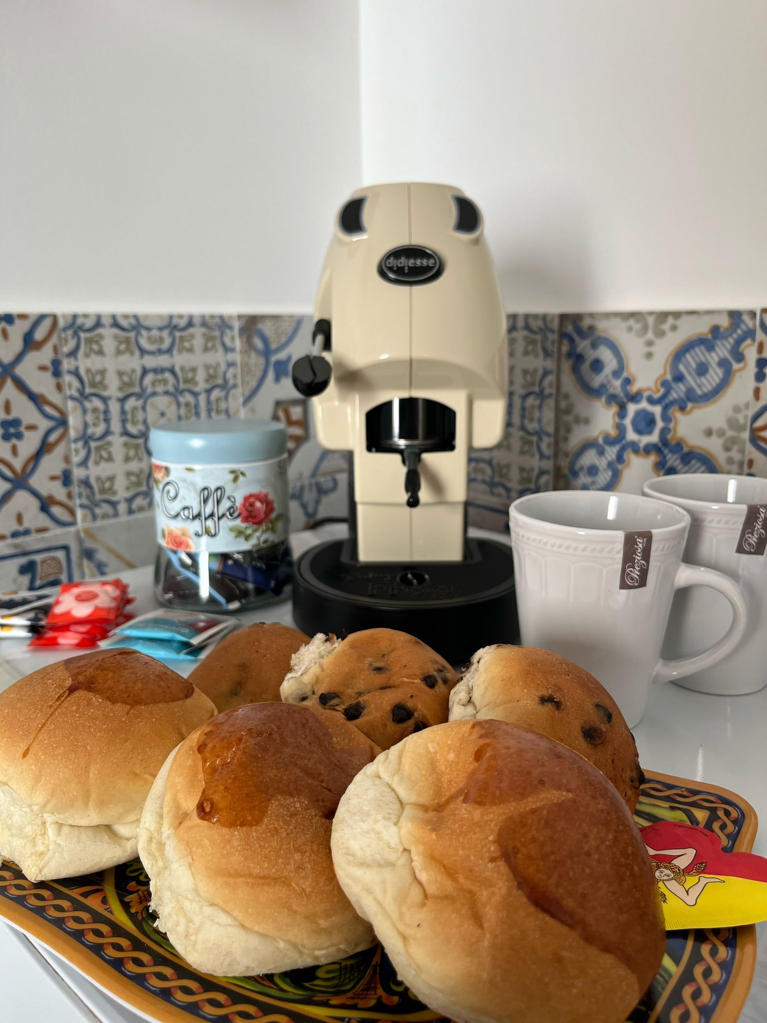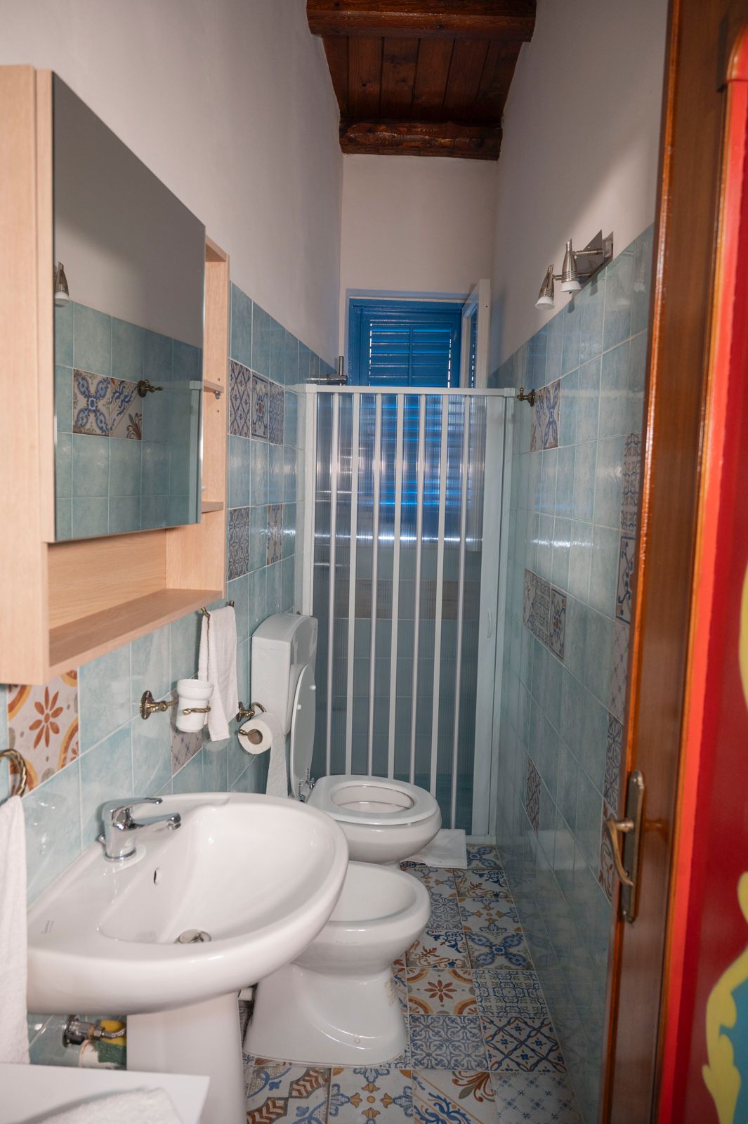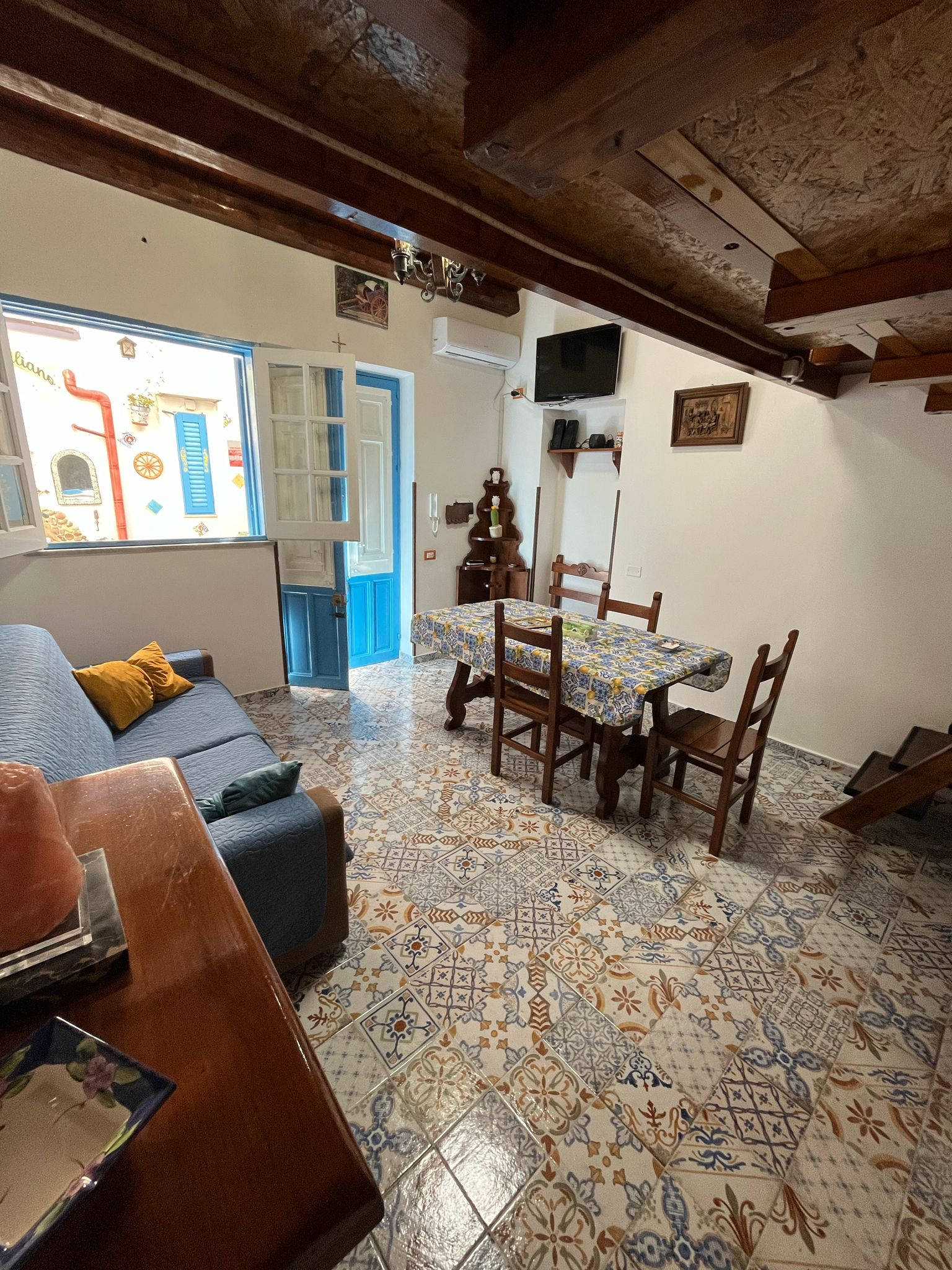 Entrando dalla tipica persiana siciliana, ci accoglie una zona living dove poter consumare i pasti o rilassarsi sul divano letto per due persone.
